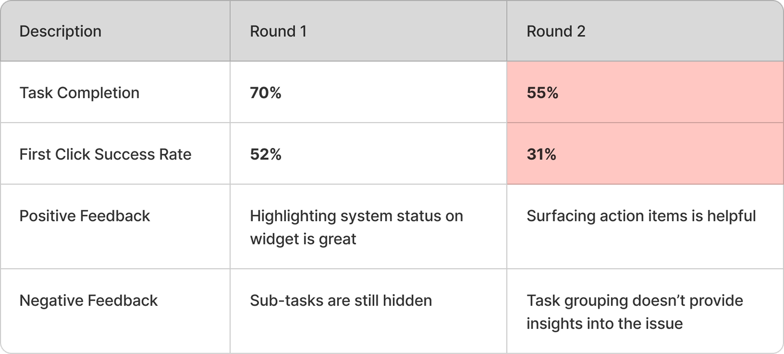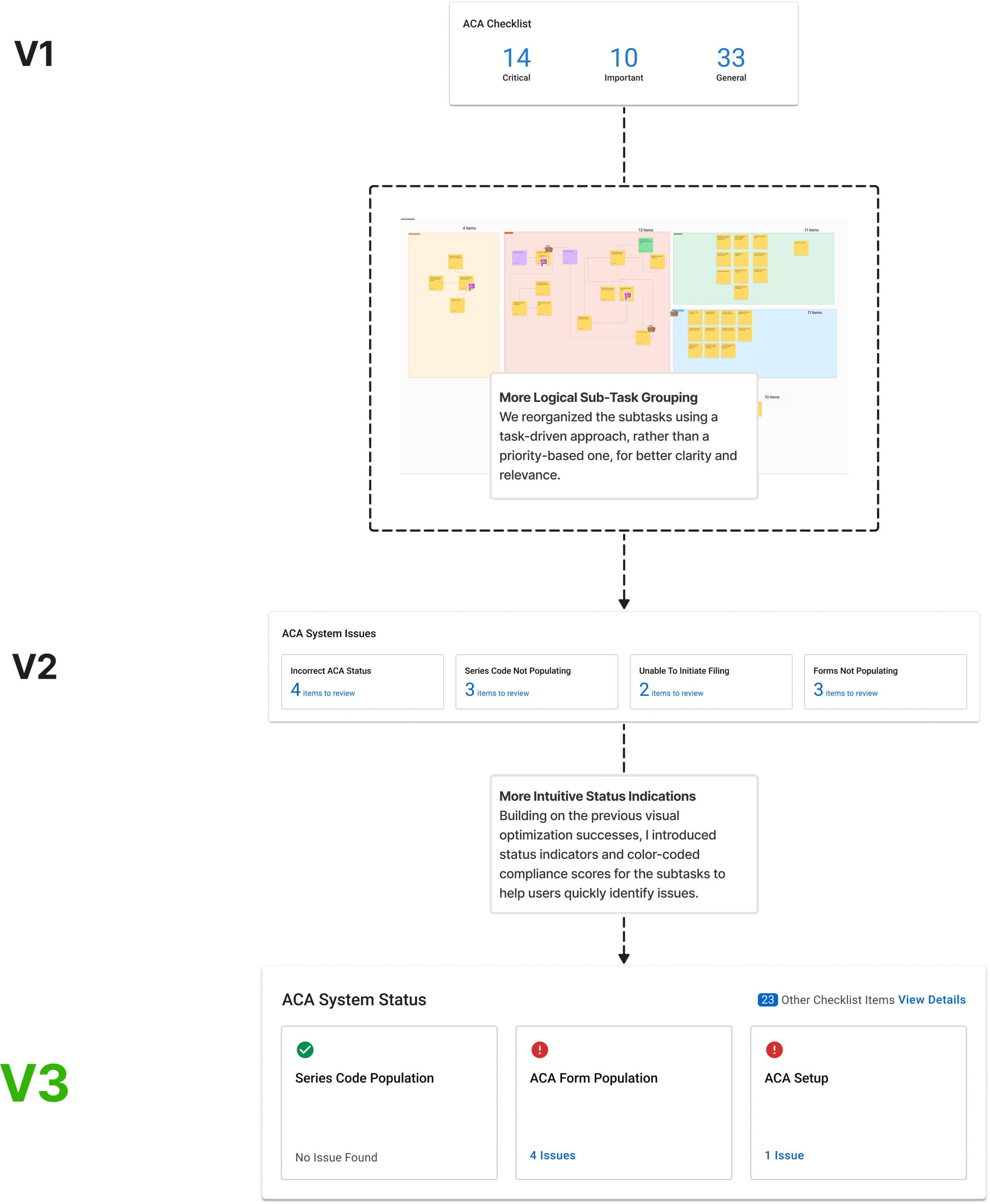 This iteration revealed that simply surfacing subtasks is not enough—the information needs to be structured in a way that guides users toward problem resolution rather than overwhelming them with number of items.