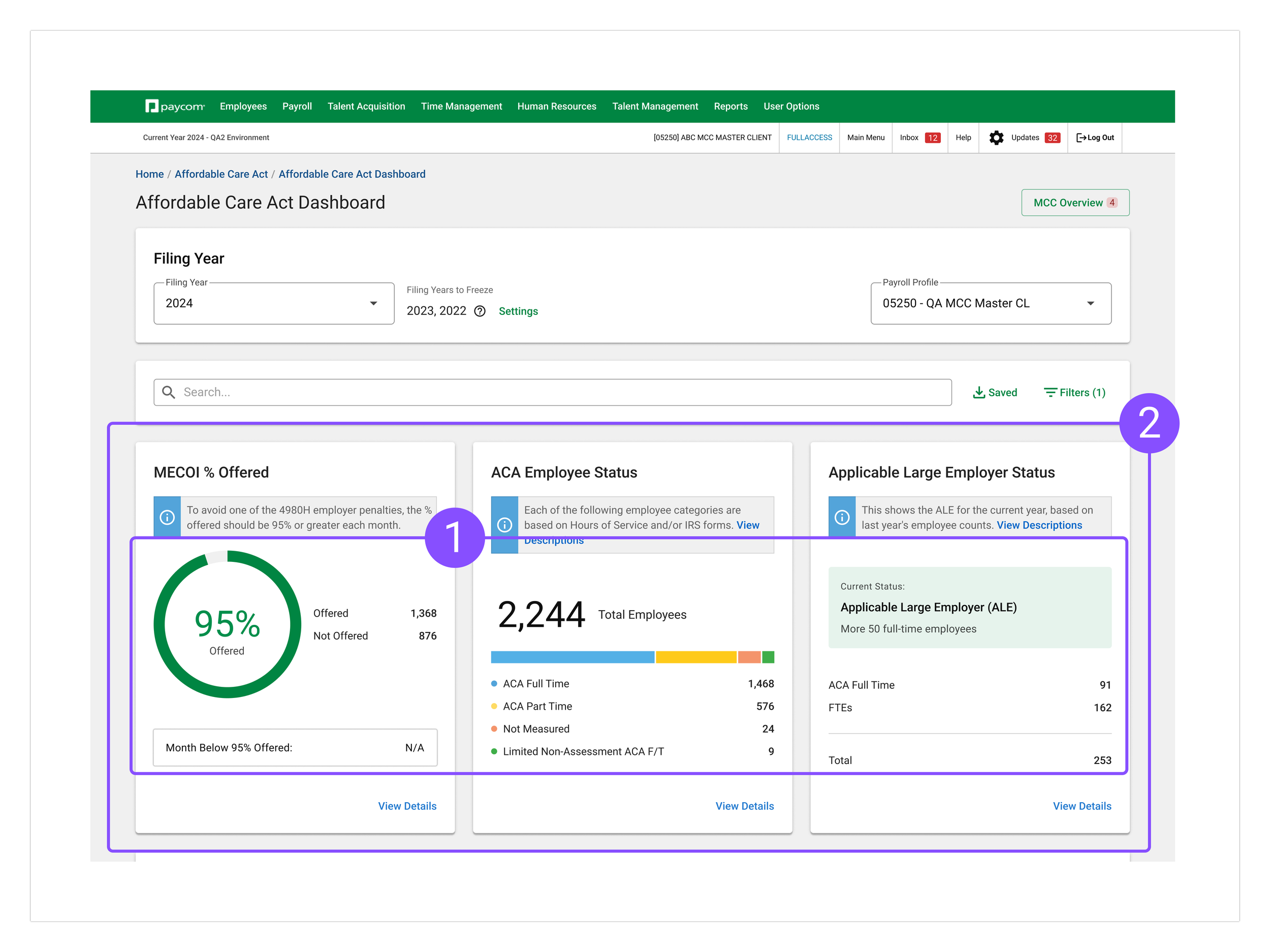 1. Highlight ACA Compliance Status