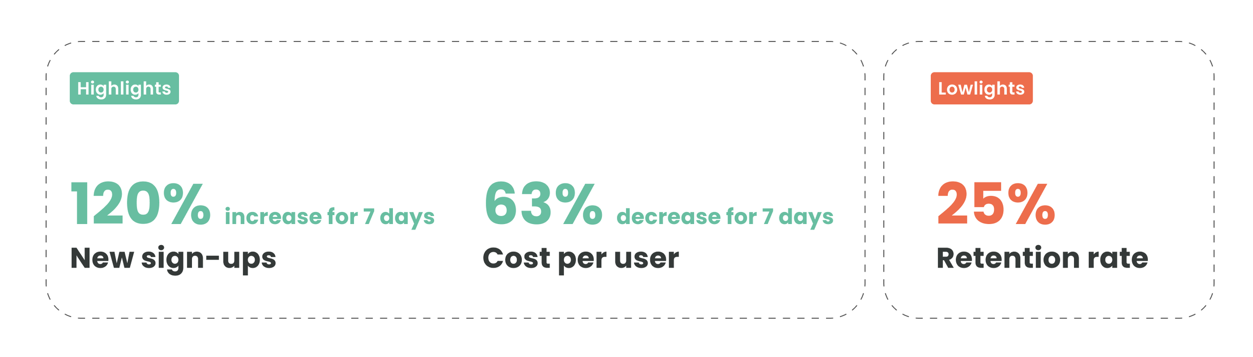 Our pilot test showed impressive results, with a 120% increase in growth rate and a 63% decrease in cost per user over 7 days.