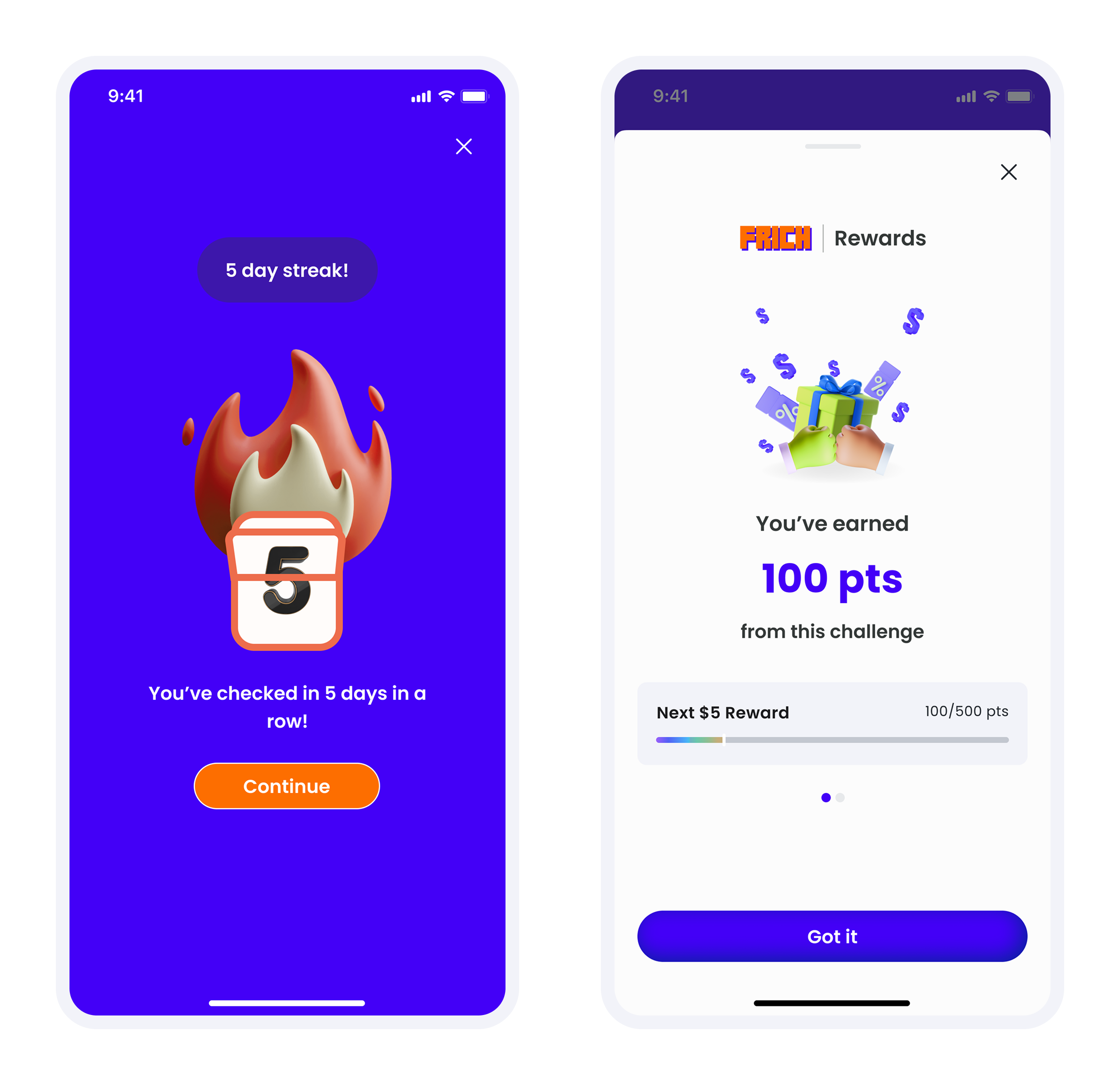 Even for small rewards, we celebrated with users to build their confidence and motivate them to continue the challenge.