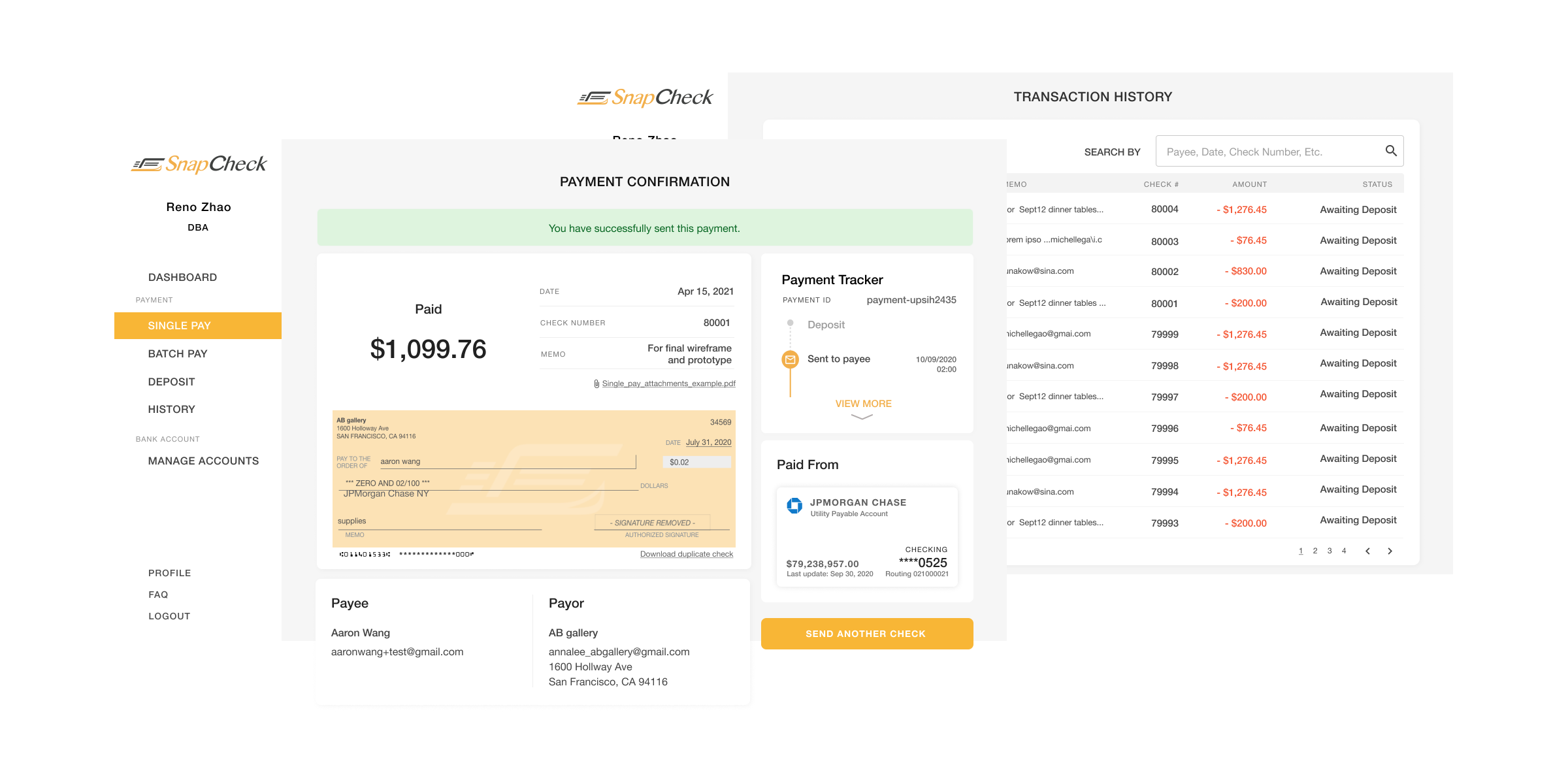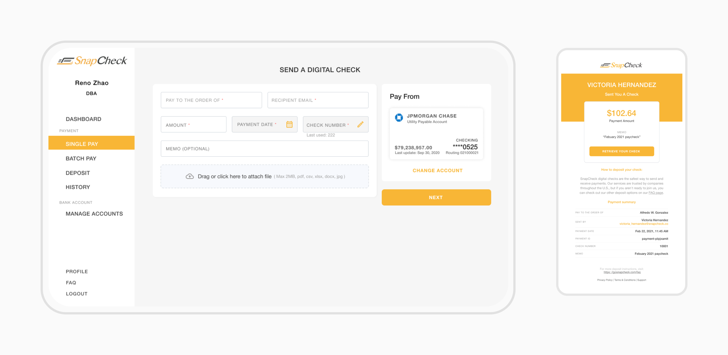 SnapCheck is a B2B payments platform that provides a digital checks solution for SMEs to pay vendors & suppliers, reimburse employees, and make any business related payments.