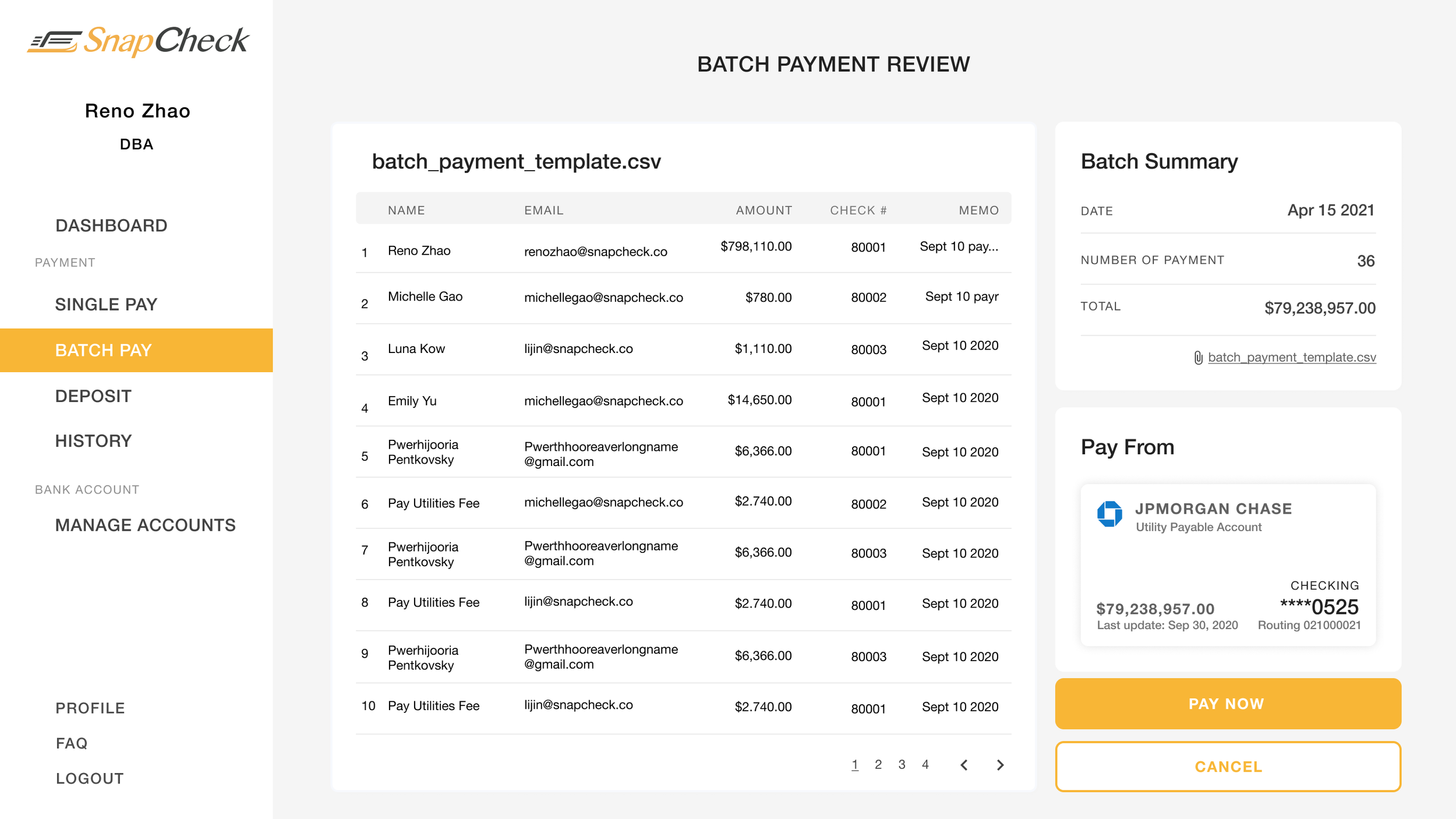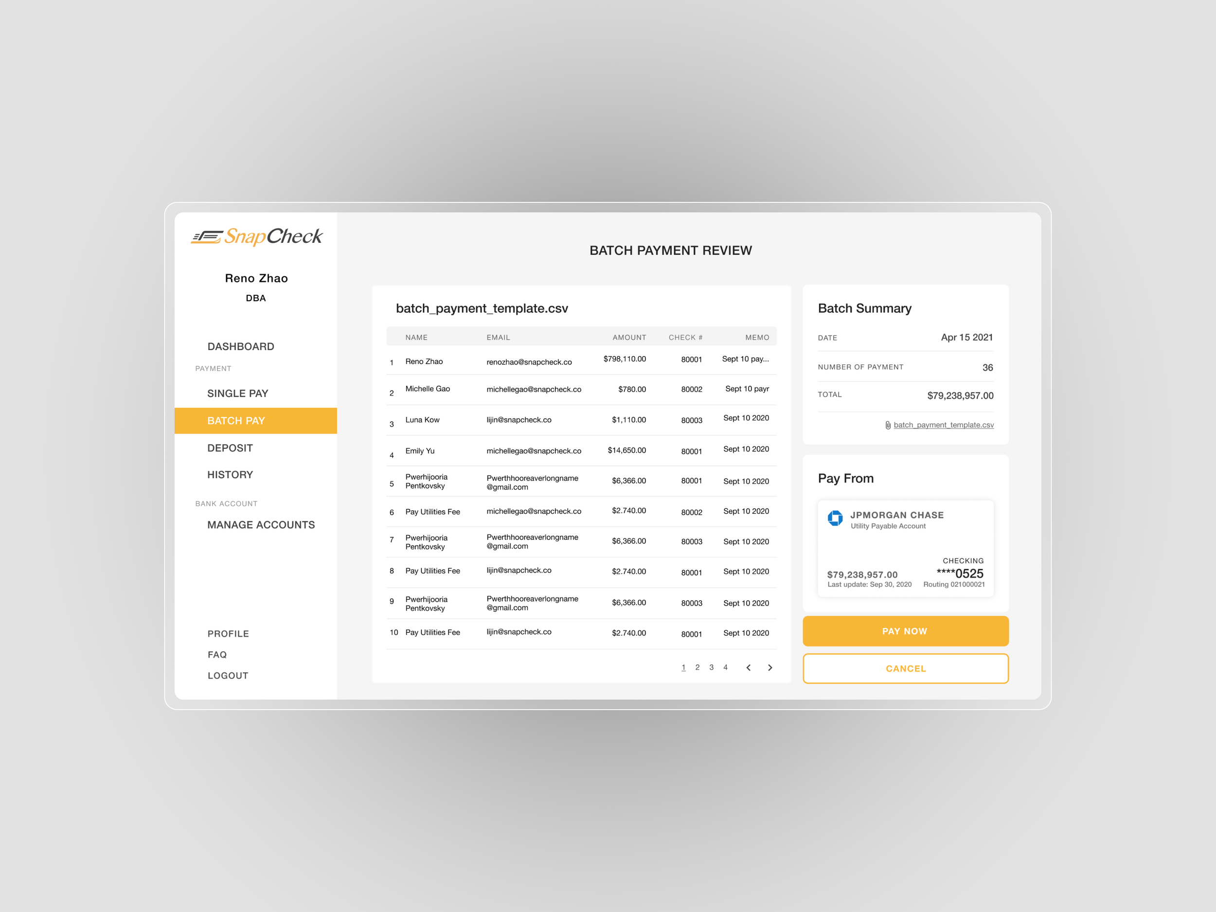 I led the design of SnapCheck's Batch Payments experience for SME (Small & Medium-sized Enterprise) users, with a focus on delivering a streamlined process for sending or preparing multiple payments at once. Our efforts resulted in a highly successful batch payment solution that led to a high adoption rate, accounting for 31.6% of the payments made by business accounts.
