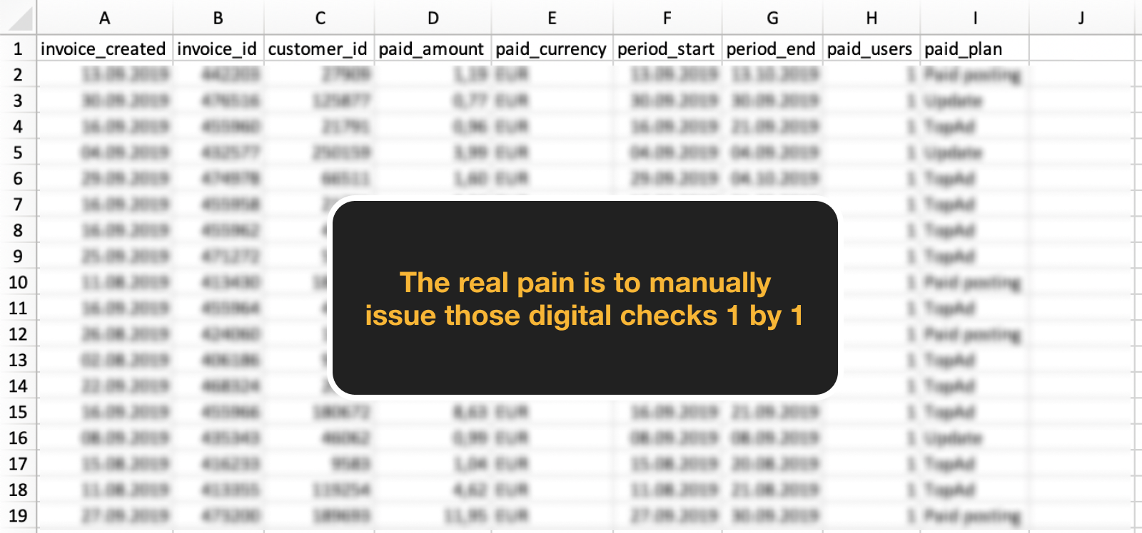 Insight #2: They usually send payments on a spreadsheet altogether at once.