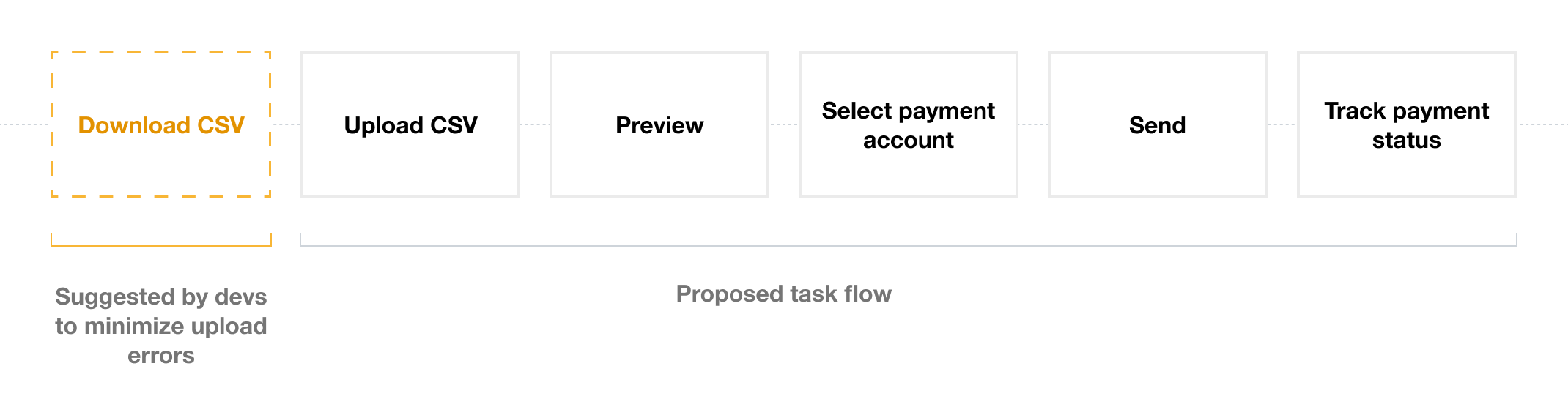 I shared the research findings with the team in a 60 min meeting, with first half walking through the insights and the second half ideating the batch payments flow in CSV upload.